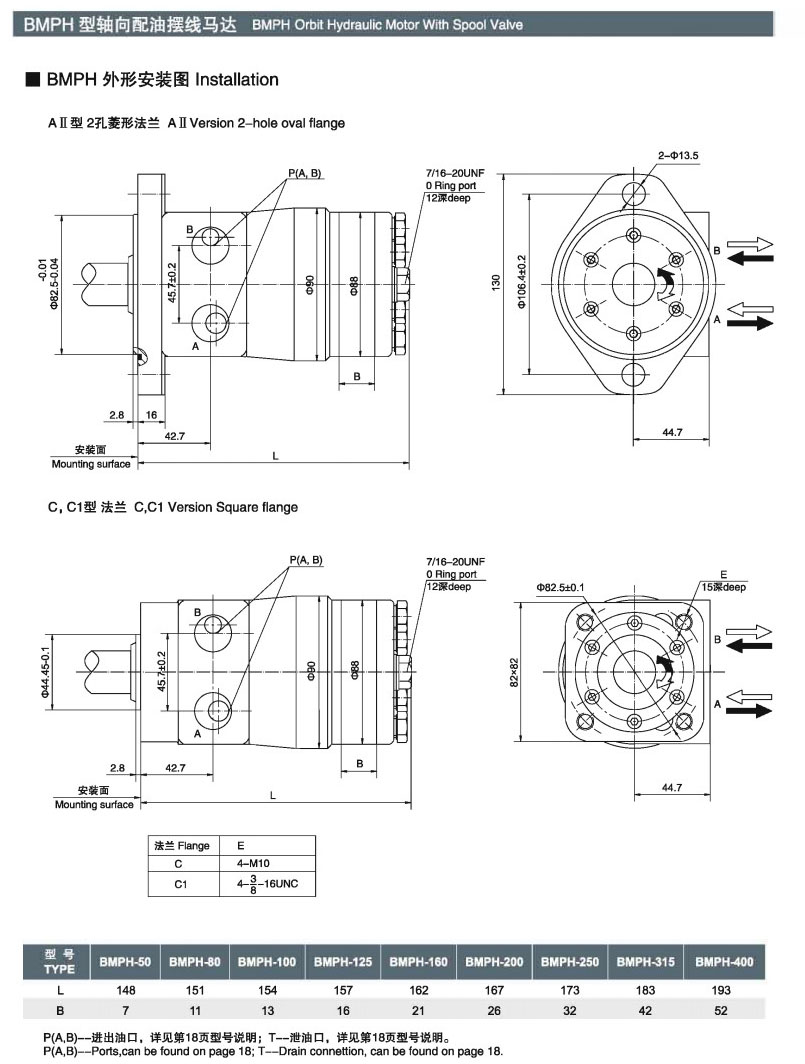 BMPH-50,BMPH-80,BMPH-100,BMPH-125,BMPH-160,BMPH-200,BMPH-250,BMPH-315,BMPH-400,軸向配油擺線馬達(dá)