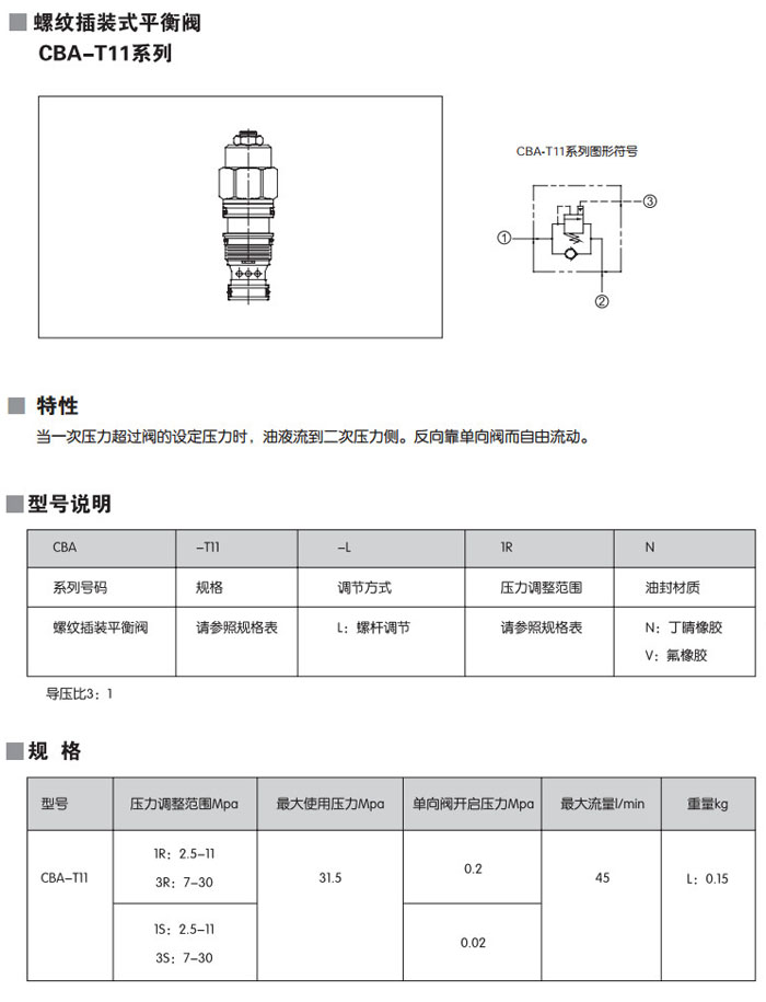 CBA-T11-L1RN,CBA-T11-L3RN,CBA-T11-L1SN,CBA-T11-L3SN,CBA-T11-L1RV,CBA-T11-L3RV,螺紋插裝式平衡閥