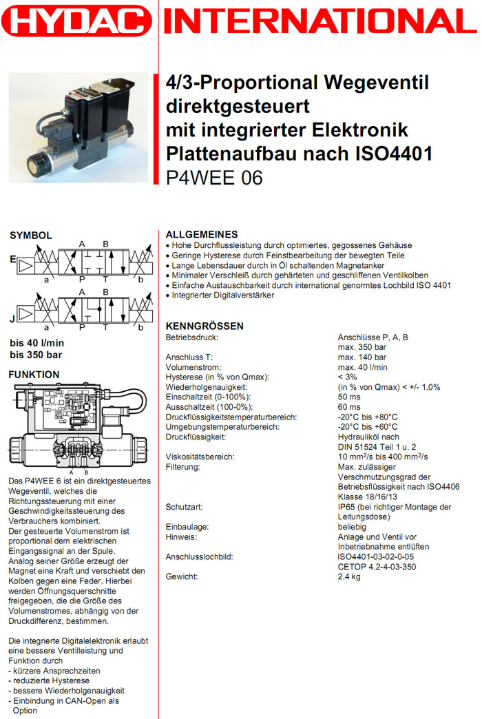 P4WEE06E04D01-24PGE0/V,P4WEE06J08D01-24PGE0/V,P4WEE06E16D01-24PGE1/V,HYDAC比例換向閥