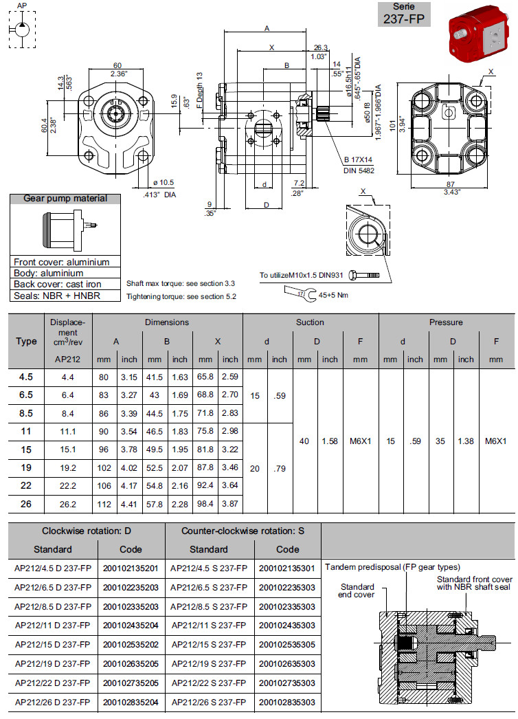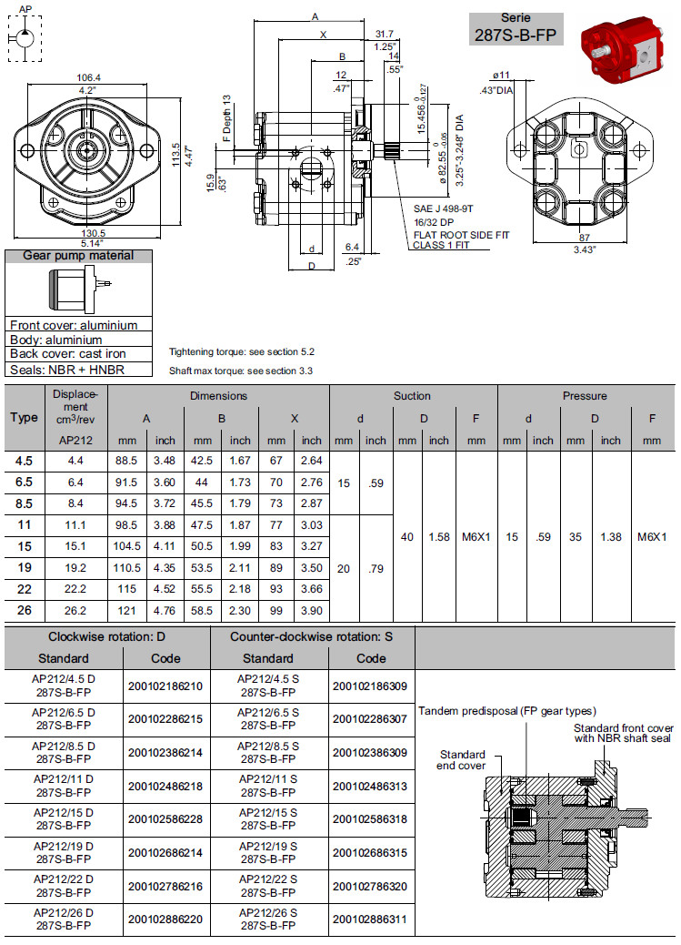 AP212/6.5-D-218-FP,AP212/11,AP212/15,AP212/19,AP212/22,Bucher外嚙合齒輪泵