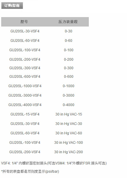 GU20SL-30-VSF4,GU20SL-60-VSF4,GU20SL-100-VSF4,GU20SL-200-VSF4,GU20SL-300-VSF4,壓力表 |