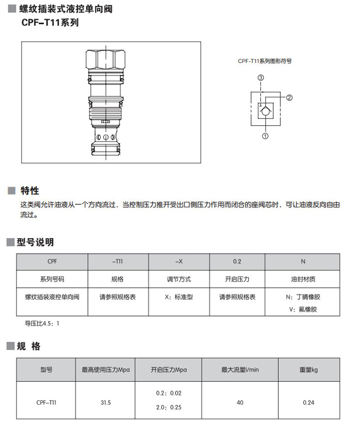 CPF-T11-X0.2N,CPF-T11-X0.2V,CPF-T11-X2.0N,CPF-T11-X2.0V,螺紋插裝式液控單向閥