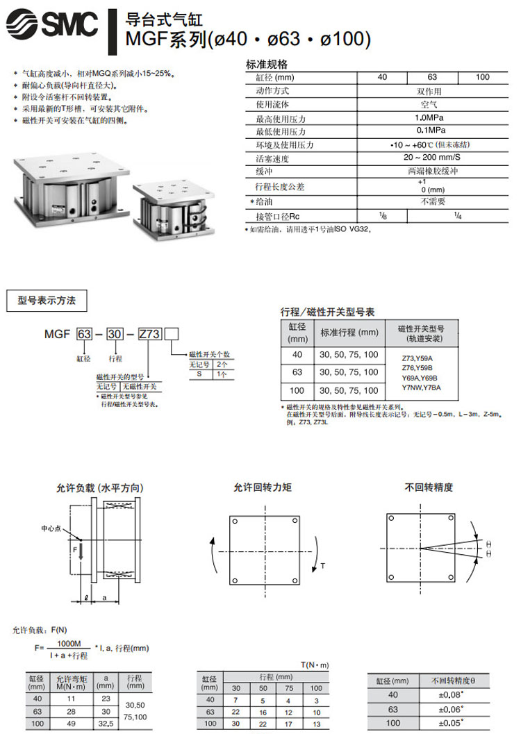 MGF40-30,MGF63-30,MGF100-30,MGF40-50,MGF63-50,MGF100-50,SMC導(dǎo)臺(tái)式氣缸