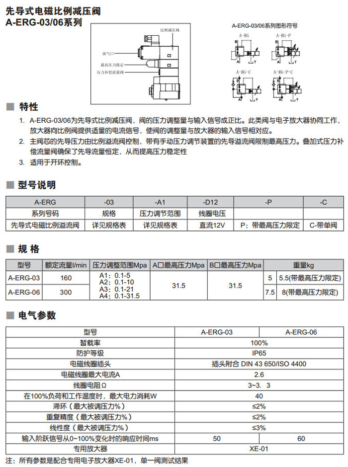 A-ERG-03,A-ERG-06,A-ERG-03-A1-D12-P-C,A-ERG-06-A1-D12-P-C,先導(dǎo)式電磁比例減壓閥