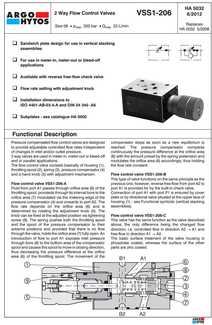 VSS1-206-6.3,VSS1-206-12,VSS1-206-22,ARGO 2路流量控制閥