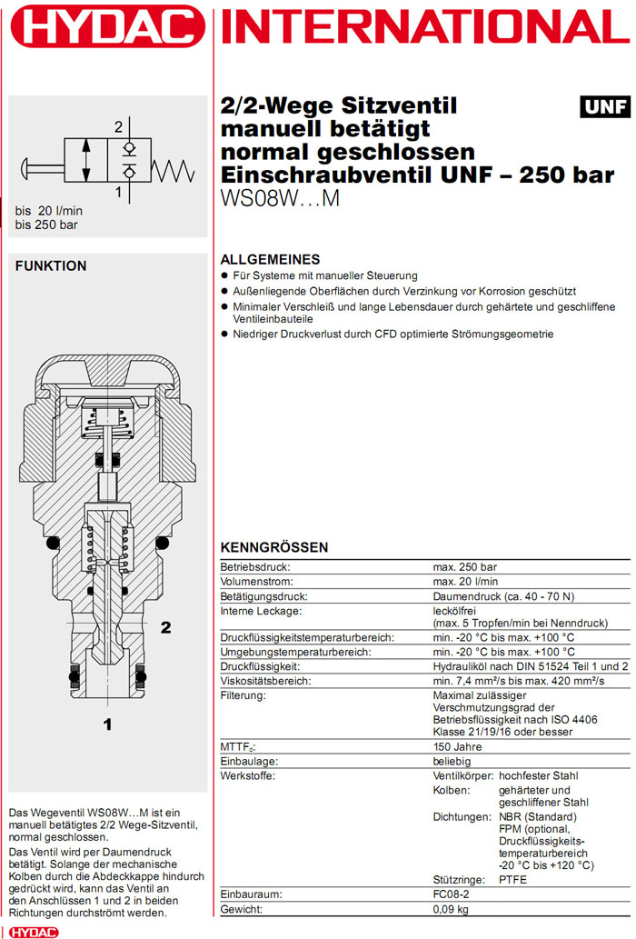 WS08WM-01-C-N,HYDAC手動(dòng)致動(dòng)2/2提升方向座閥