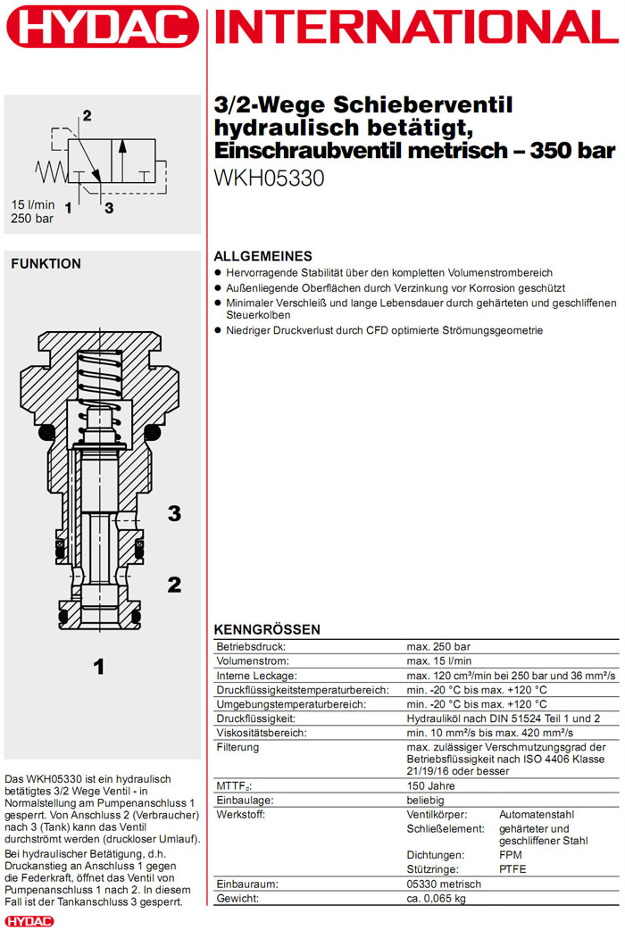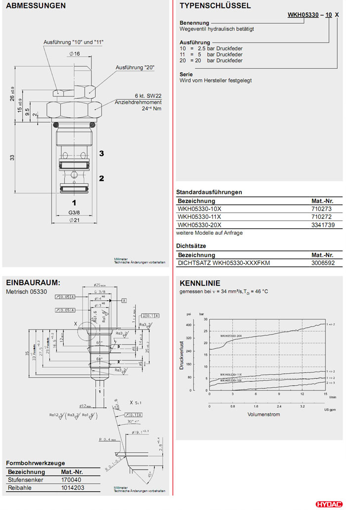 WKH05330-10X,WKH05330-11X,WKH05330-20X,HYDAC二位三通方向滑閥