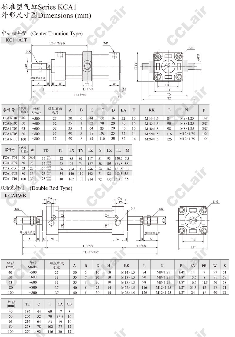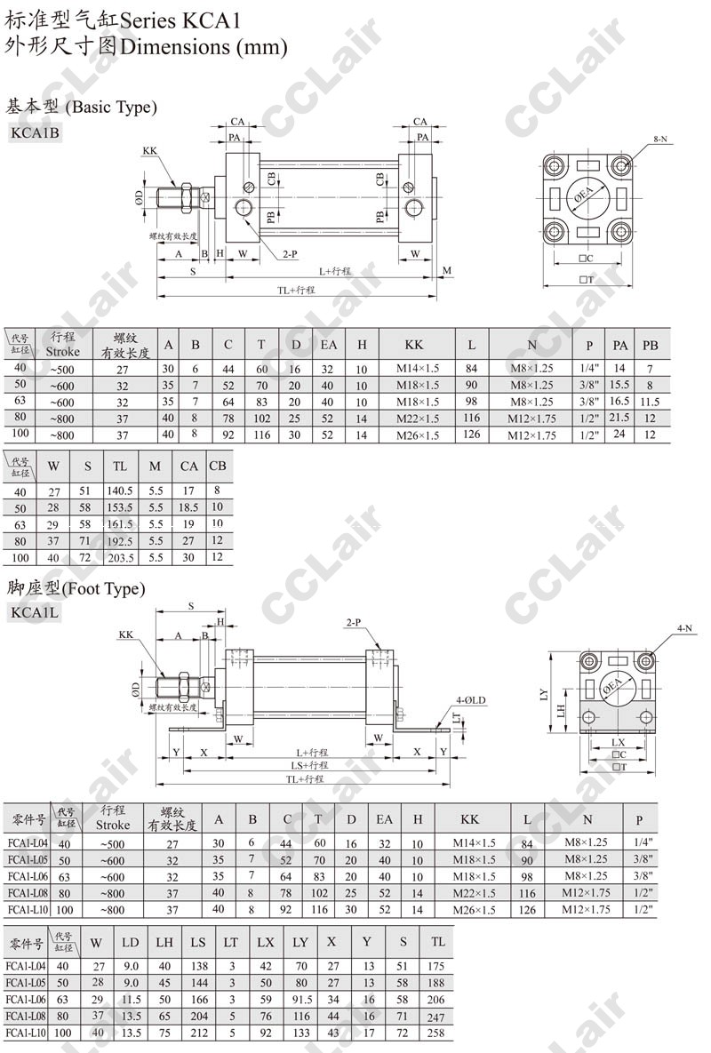 KCA1C40-25,KCA1C40-50,KCA1C40-75,KCA1C40-100,KCA1C40-125,CCLair KCA1C40-150,KCA1C40-175,KCA1G80-175,