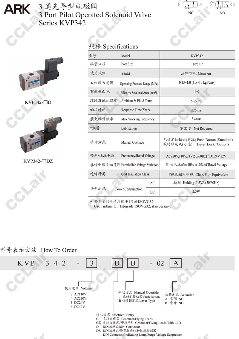 詳細信息 KVP342-3,KVP342-4,KVP342-5,KVP342-6,KVP342-3DZ-02B,KVP342-3G-02A,ARK3通先導型電磁閥