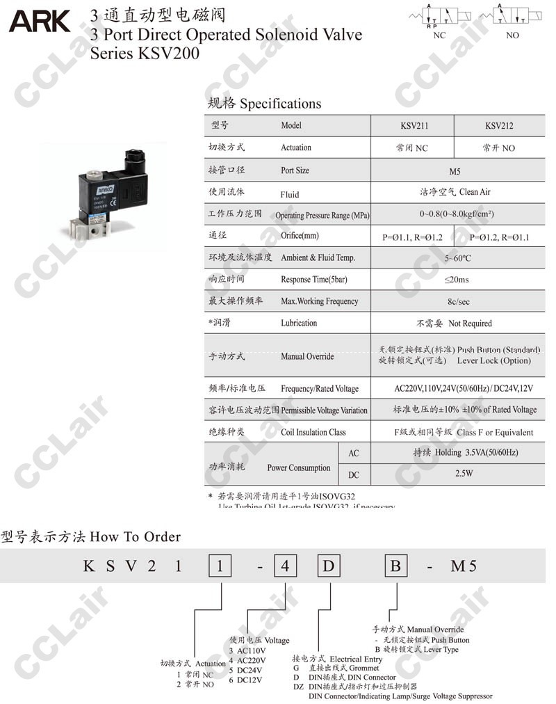 KSV211,KSV212,KSV211-3G-M5,KSV211-3D-M5,KSV211-3DZ-M5,KSV211-4G-M5,KSV211-4D-M5,ARK3通直動型電磁閥
