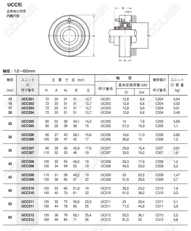UCC201,UCC202,UCC203,UCC204,UCC205,UCC305,UCC206,UCC306,UCC207,UCC307,UCC,軸承