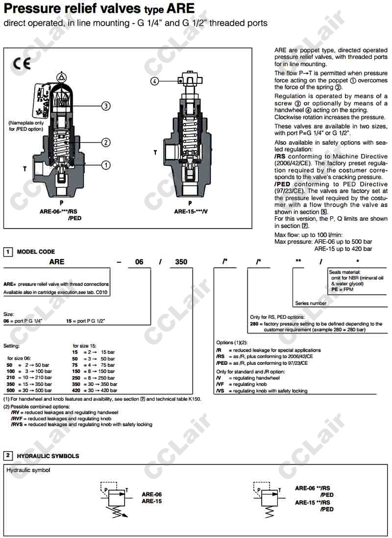 ARE-06,ARE-15,ARE-06/350/R,ARE-06/500/R,ARE-15/350/PED,ARE-15/420/PED,阿托斯ATOS直動式溢流閥 |