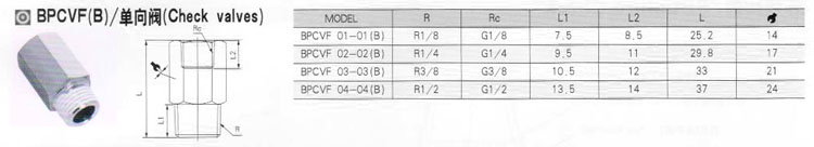 詳細信息 BPCVF01-01(B),BPCVF02-02(B),BPCVF03-03(B),BPCVF04-04(B),單向閥