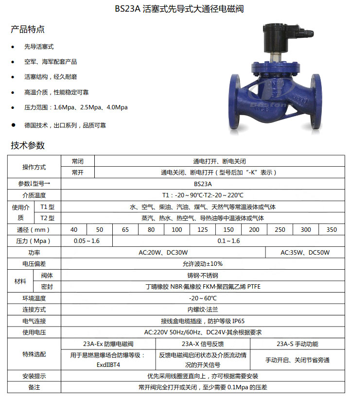 詳細信息 BS23A-DN40,BS23A-DN50,BS23A-DN65,BS23A-DN80,大通徑鑄鋼電磁閥