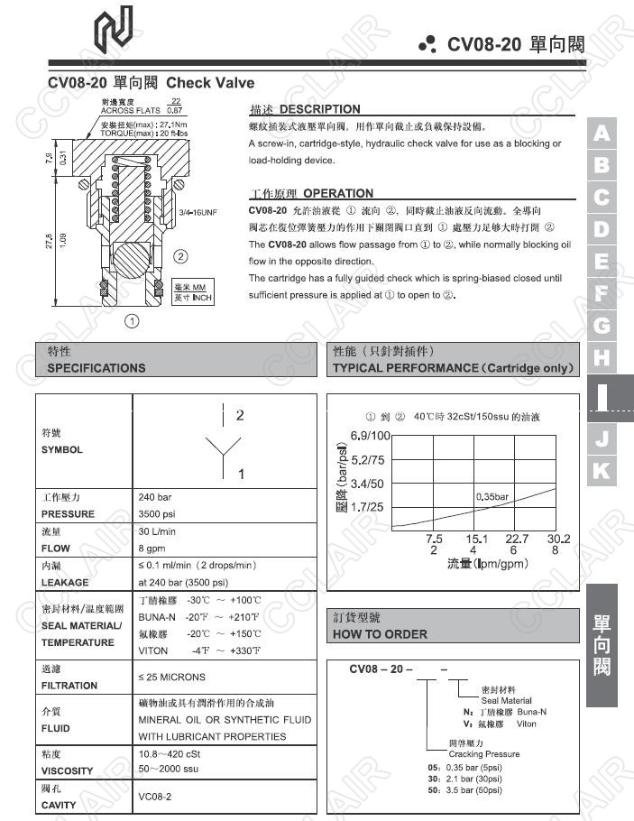 詳細(xì)信息 Northman臺(tái)灣北部精機(jī),單向閥CV08-20-05-N,CV08-20-05-V,CV08-20-30-N,CV08-20-30-V,CV08-20-50-N,CV08-20-50-V