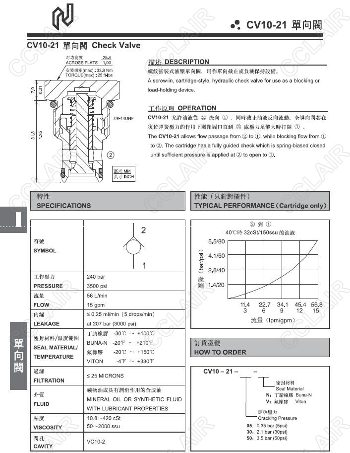 Northman臺(tái)灣北部精機(jī),單向閥CV10-21-05-N,CV10-21-05-V,CV10-21-30-N,CV10-21-30-V,CV10-21-50-N,CV10-21-50-V