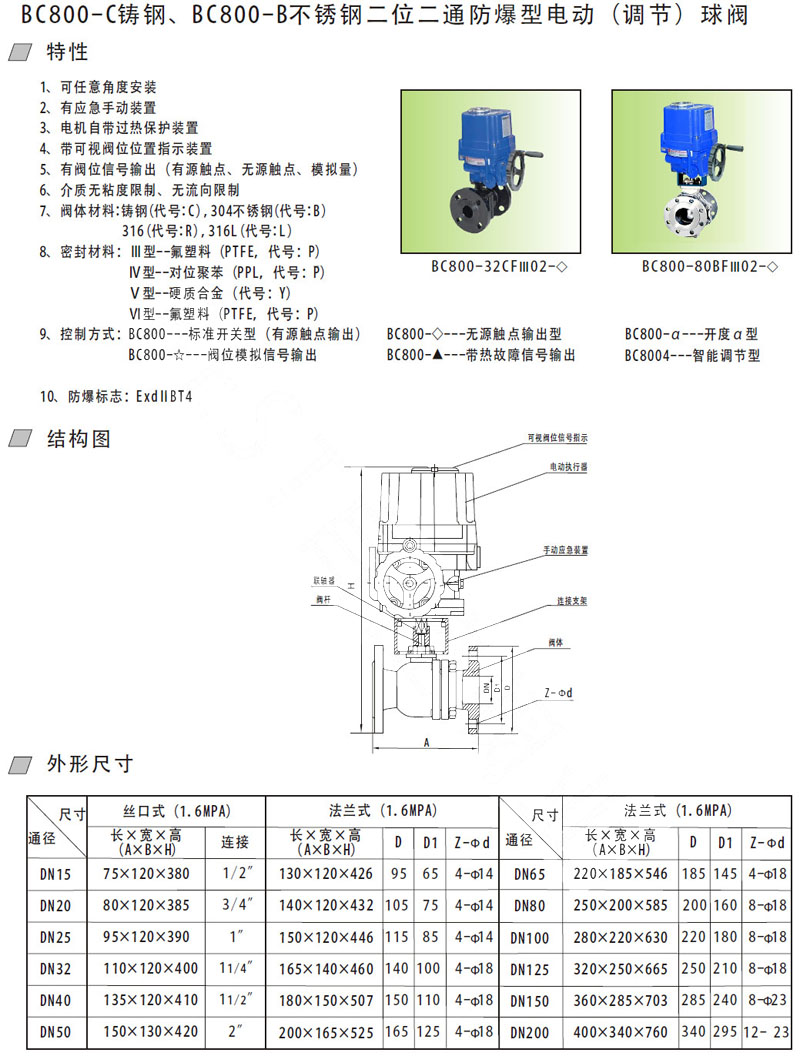 BC800-15,BC800-20,BC800-25,BC800-32,BC800-40,BC800-50,不銹鋼防爆電動球閥