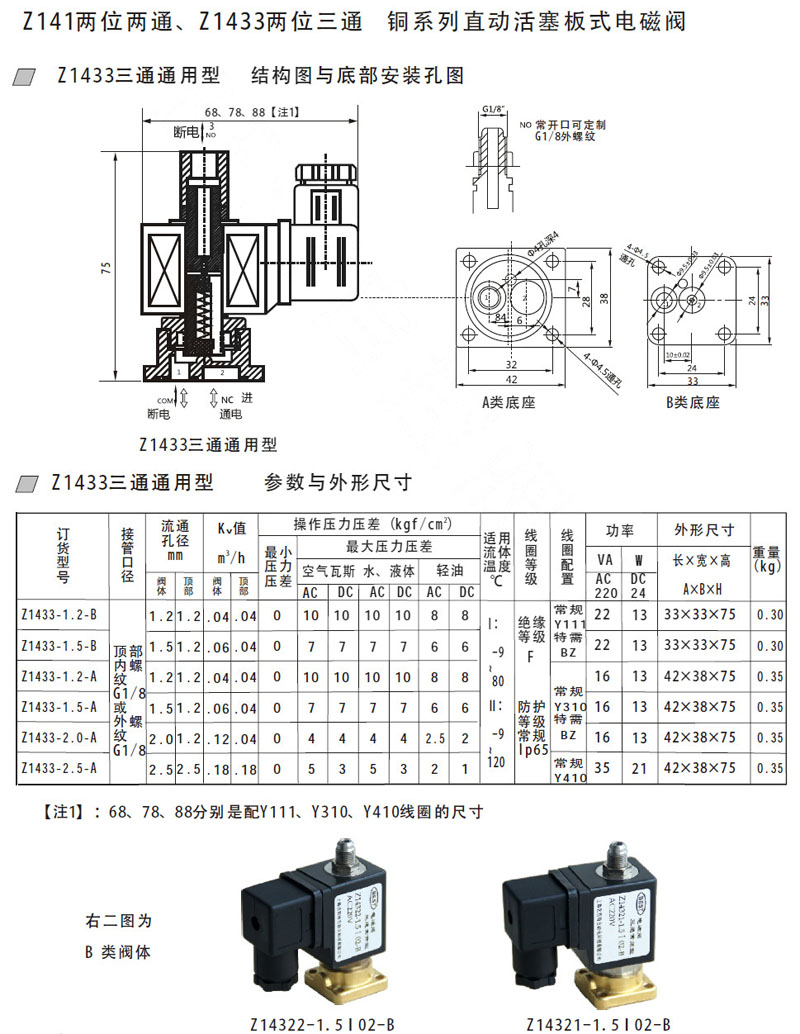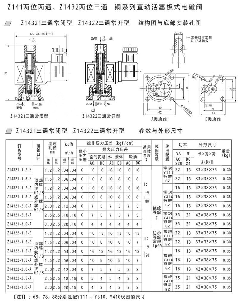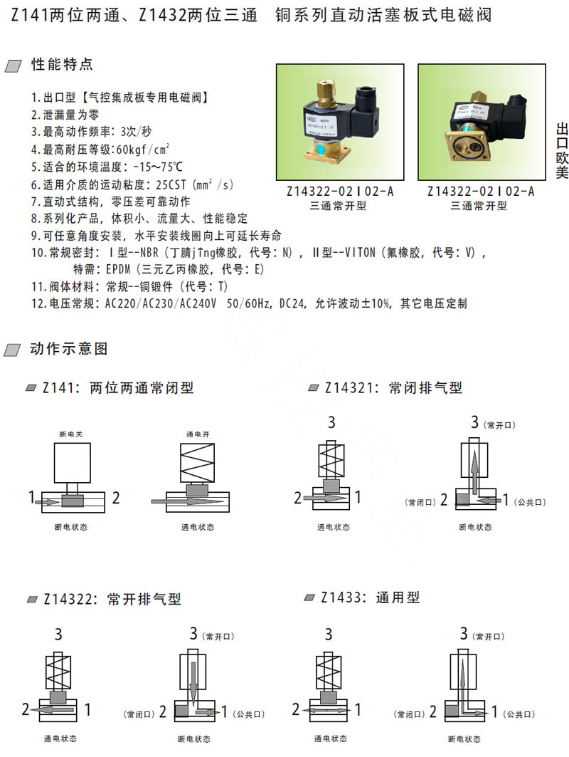 Z14321-1.2-B,Z14322-1.5-B,Z1433-1.2-B,Z141-1.2-A,Z14321-2.5-A,直動活塞板式電磁閥