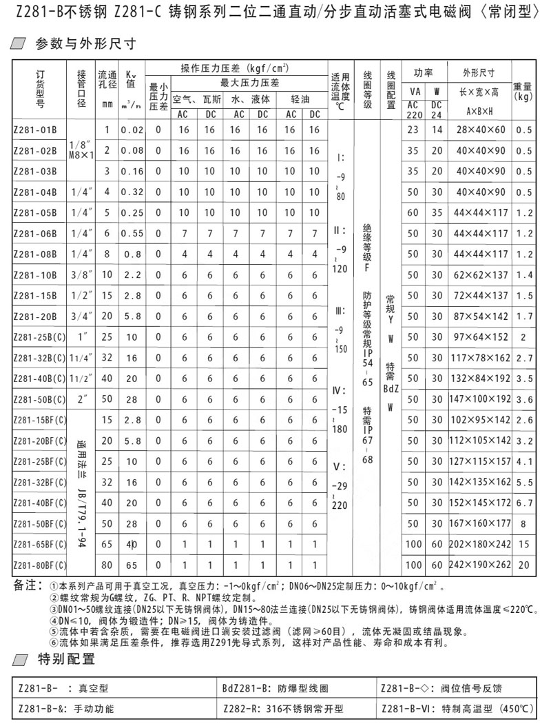 Z281-01B,Z281-02B,Z281-32BC,Z281-40BC,Z281-65BF,Z281-80BFC,直動(dòng)活塞式電磁閥