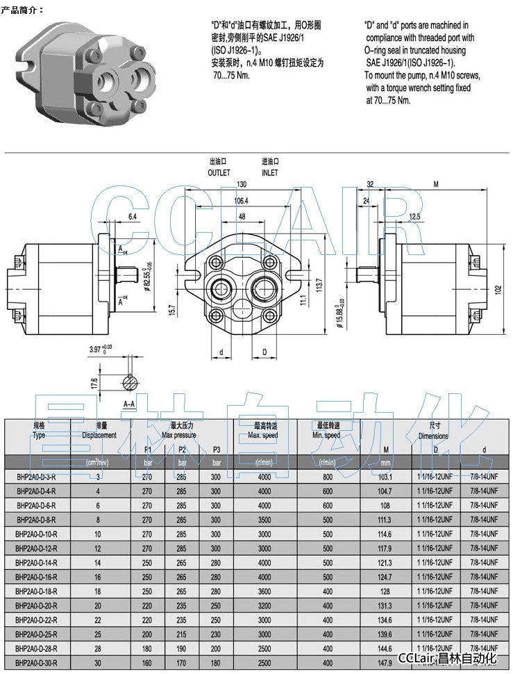 詳細信息 BHP2A0-D-3-R,BHP2A0-D-4-R,BHP2A0-D-6-R,BHP2A0-D-8-R,齒輪泵