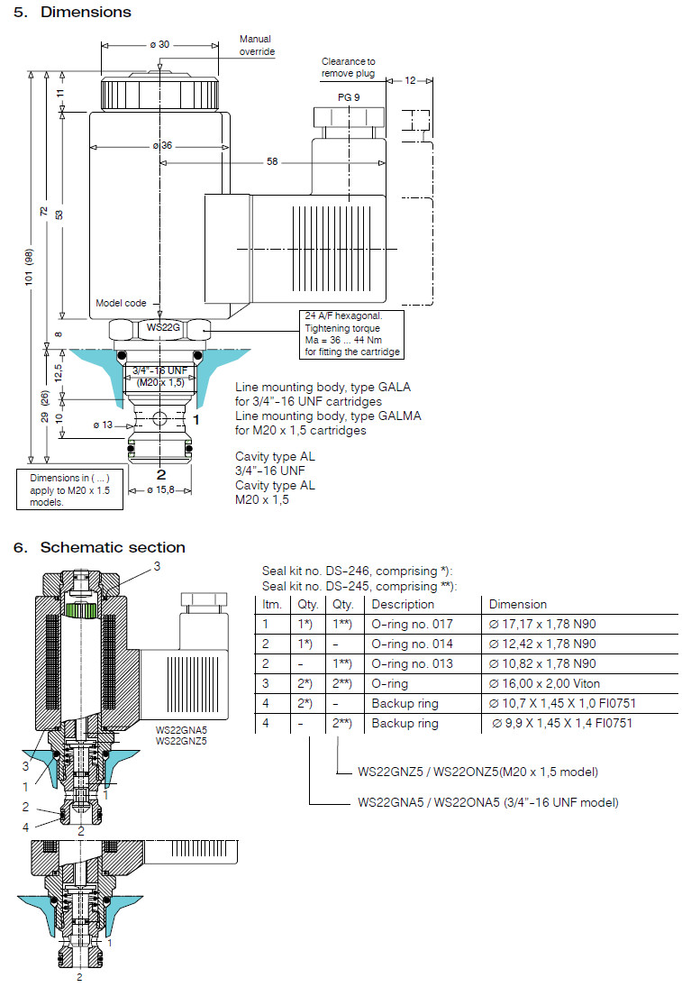 詳細(xì)信息 WS22GNA5-1,WS22GNA5V-1,WS22ONA5-1,WS22ONA5V-1,Bucher方向閥
