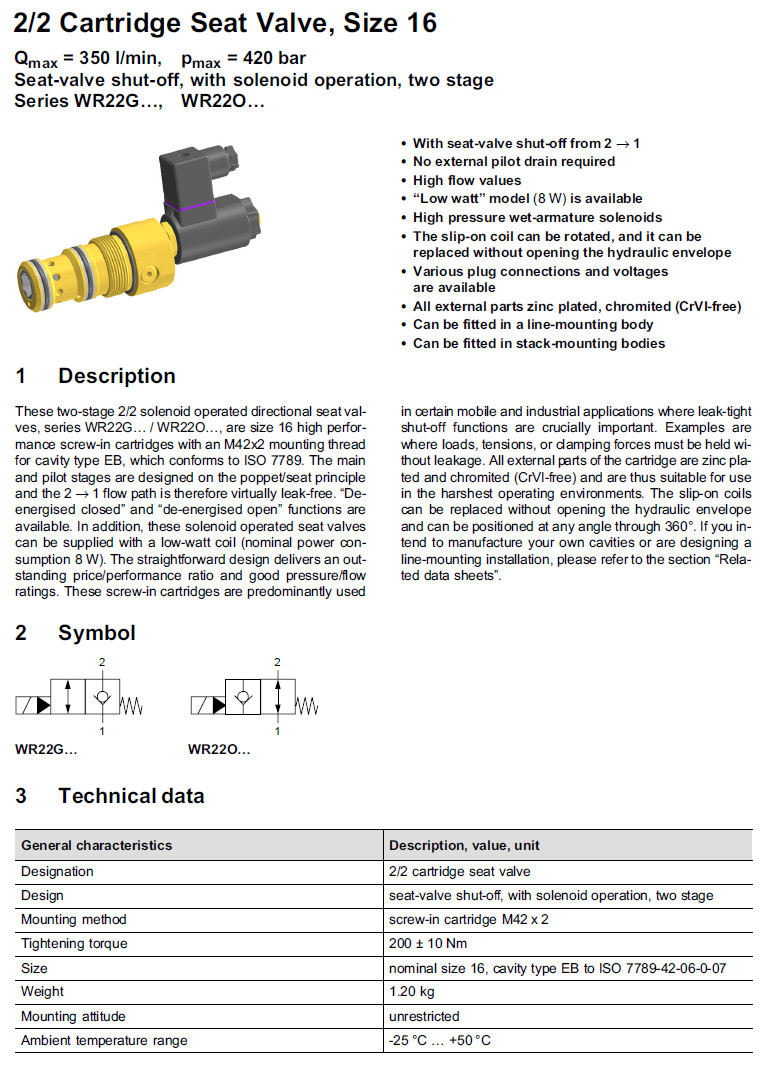 詳細(xì)信息 WR22GNBA-16-1,WR22ONBA-16-1,WR22GLBA-16-1,WR22OLBA-16-1,WR22GNBA-16V-1,Bucher方向閥