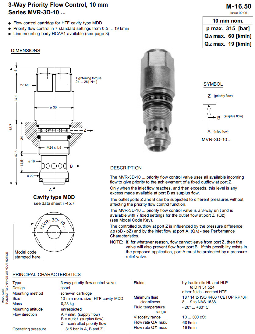詳細(xì)信息 MVR-3D-10-05-1,MVR-3D-10-20-1,MVR-3D-10-50-1,MVR-3D-10-80-1,Bucher流量控制閥