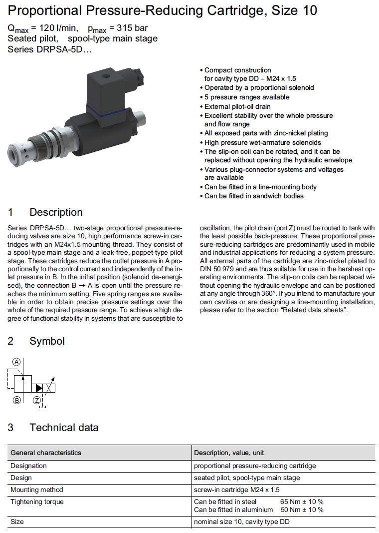 詳細(xì)信息 DRPSA-5D-100,DRPSA-5D-060,DRPSA-5D-315,DRPSA-5D-250,DRPSA-5D-160,Bucher減壓閥