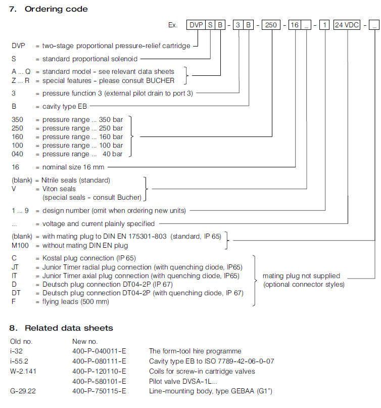 詳細(xì)信息 DVPSB-3B-040-16-1,DVPSB-3B-100-16-1,DVPSB-3B-250-16-1,DVPSB-3B-350-16-1,Bucher比例壓力溢流閥