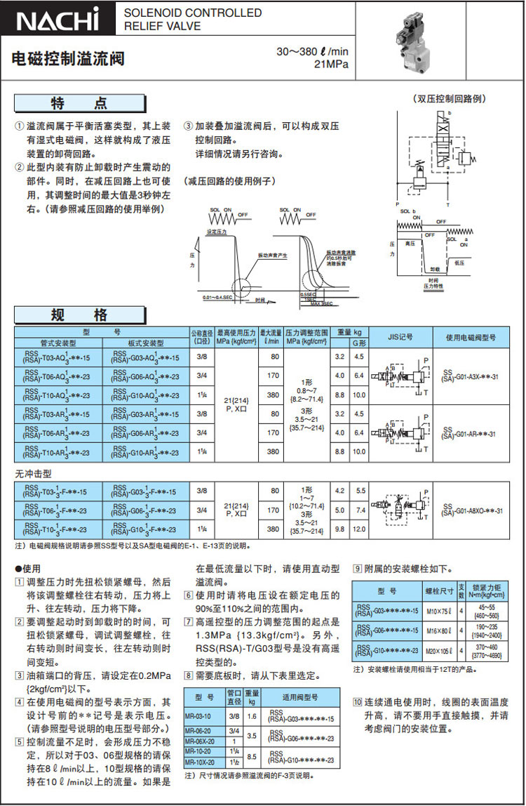 RSS-T03,RSS-T06,RSS-T10,RSA-T03,RSA-T06,RSA-T10,RSS-T03-AQ1-F-D2-15,NACHI電磁控制溢流閥