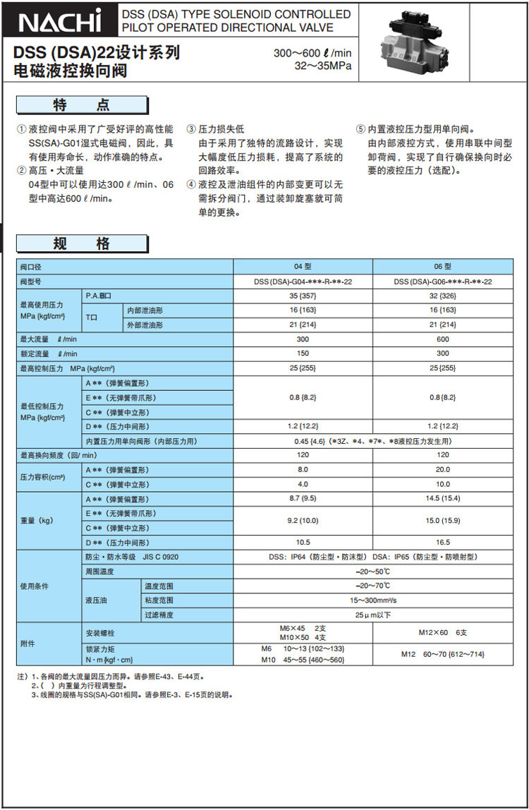 DSA-G04,DSA-G06,DSA-G04-C4S-R-C115-22,DSA-G06-E3X-R-C230-22,NACHI電磁液控換向閥