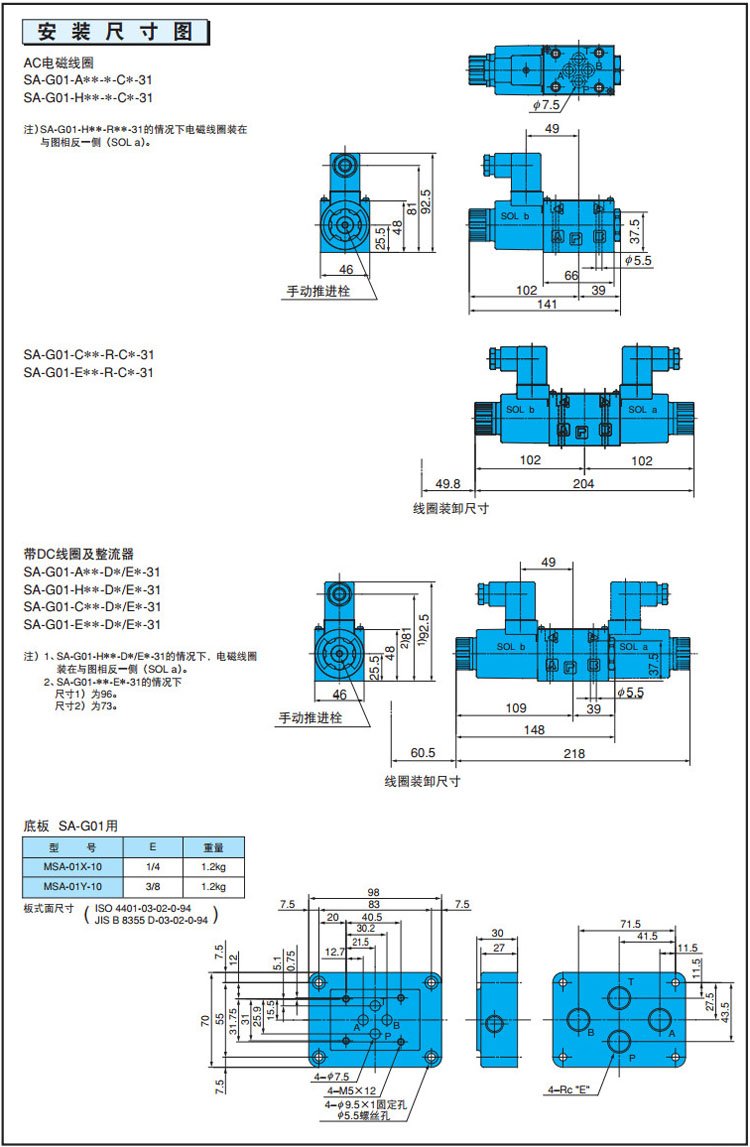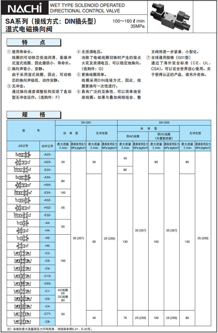 SA-G01,SA-G03,SA-G03-H2X-R-E1-J22,SA-G01-C9-GR-C930-31,SA-G01-C9-FR-E125-31,NACHI濕式電磁換向閥