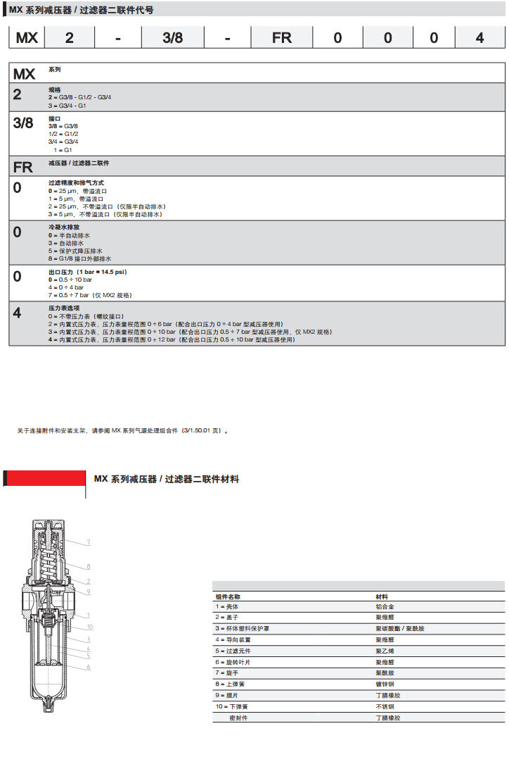 MX2-3/8-FR0004,MX2-1/2-FR0300,MX3-3/4-FR1044,MX3-1-FR1872,camozzi減壓器
