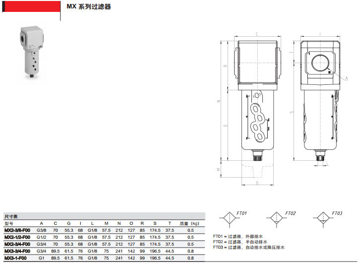 瀏覽次數(shù):634MX2-3/8-F00,MX2-1/2-F03,MX3-1/2-F05,MX3-3/8-F08,camozzi過濾器 |