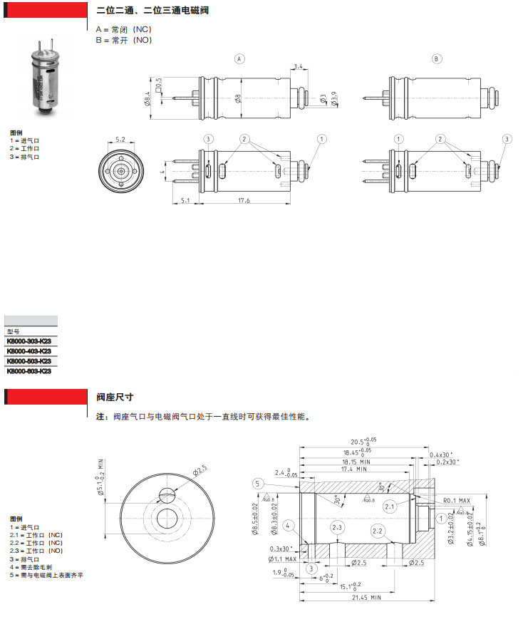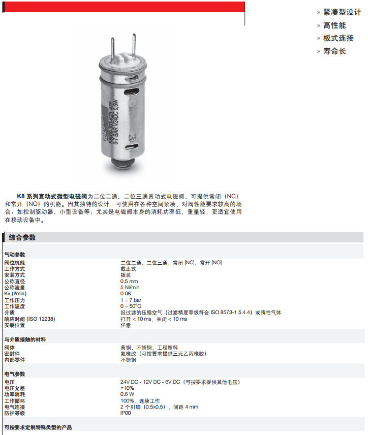 詳細信息 K8000-003-K21,K8000-303-K22,K8000-403-K23,K8000-503-K21,camozzi直動式微型電磁閥