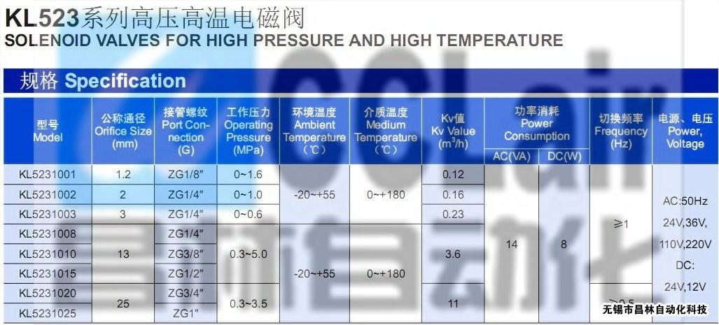 KL5231001, KL5231002, KL5231003,高溫高壓電磁閥,生產(chǎn)廠家,價格