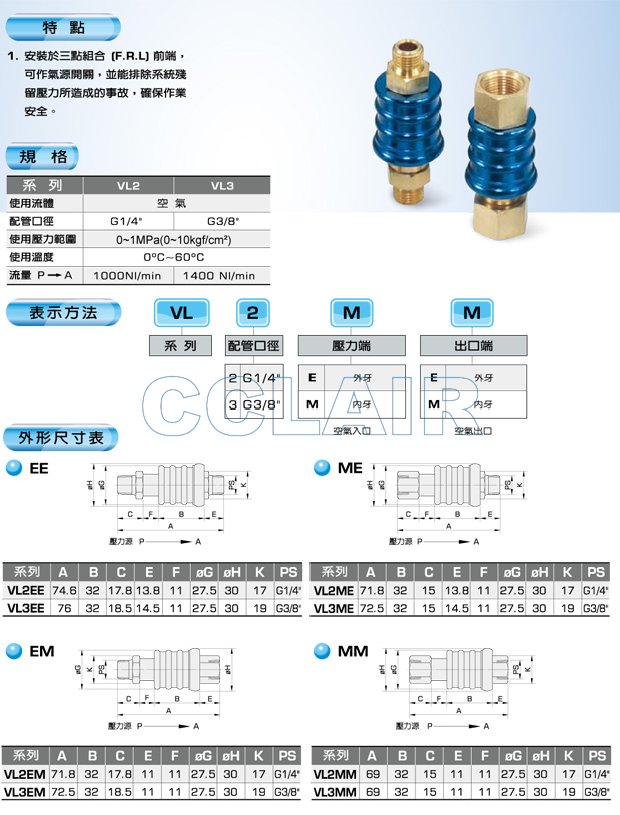VL2EE,VL3EE,VL2ME,VL3ME,VL2EM,VL3EM,VL2MM,VL3MM,滑動泄氣閥
