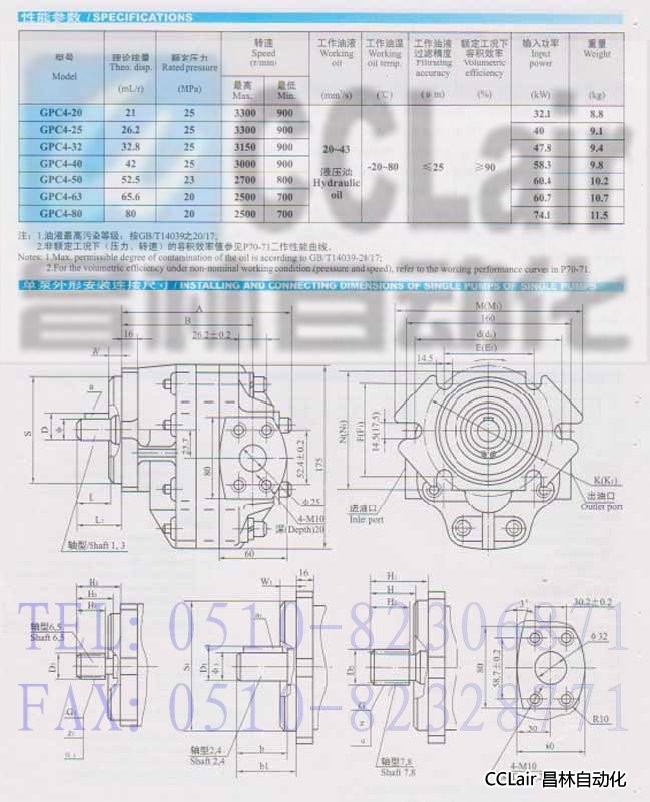 GPC4-20, GPC4-25, GPC4-32, GPC4-40, GPC4-50, GPC4-50,齒輪泵