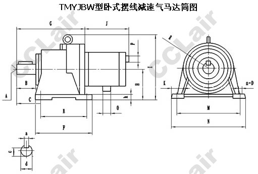 TMYJBW型臥式擺線減速氣馬達安裝及外形尺寸表