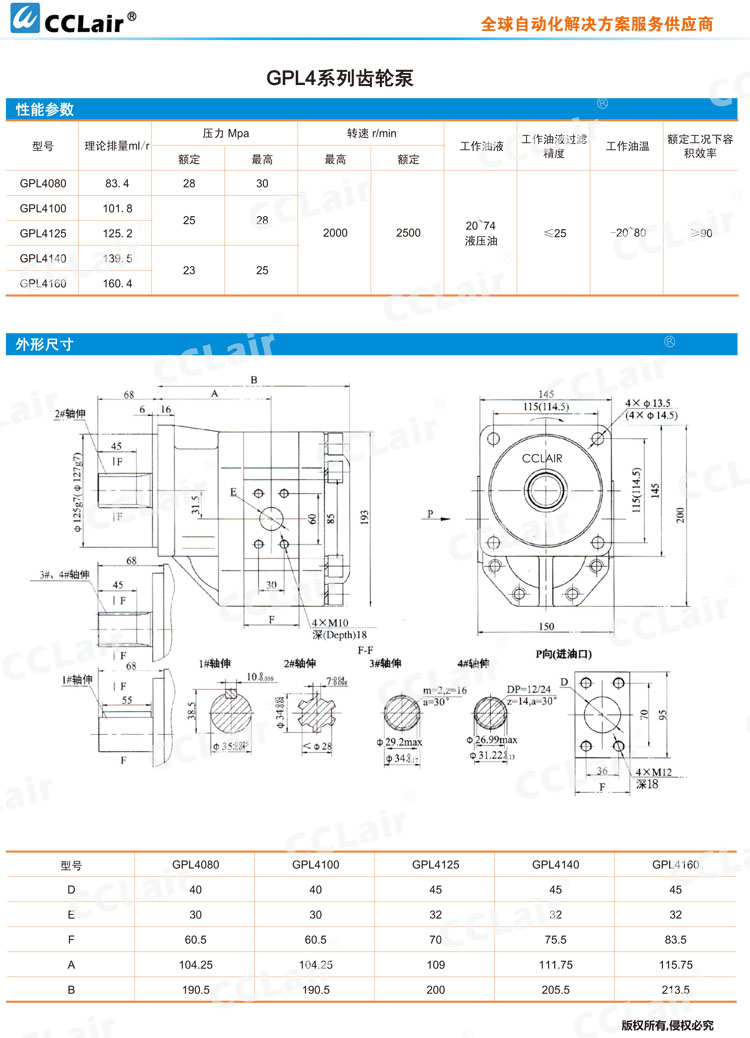 GPL4080,GPL4100,GPL4125,GPL4140,GPL4160,齒輪泵