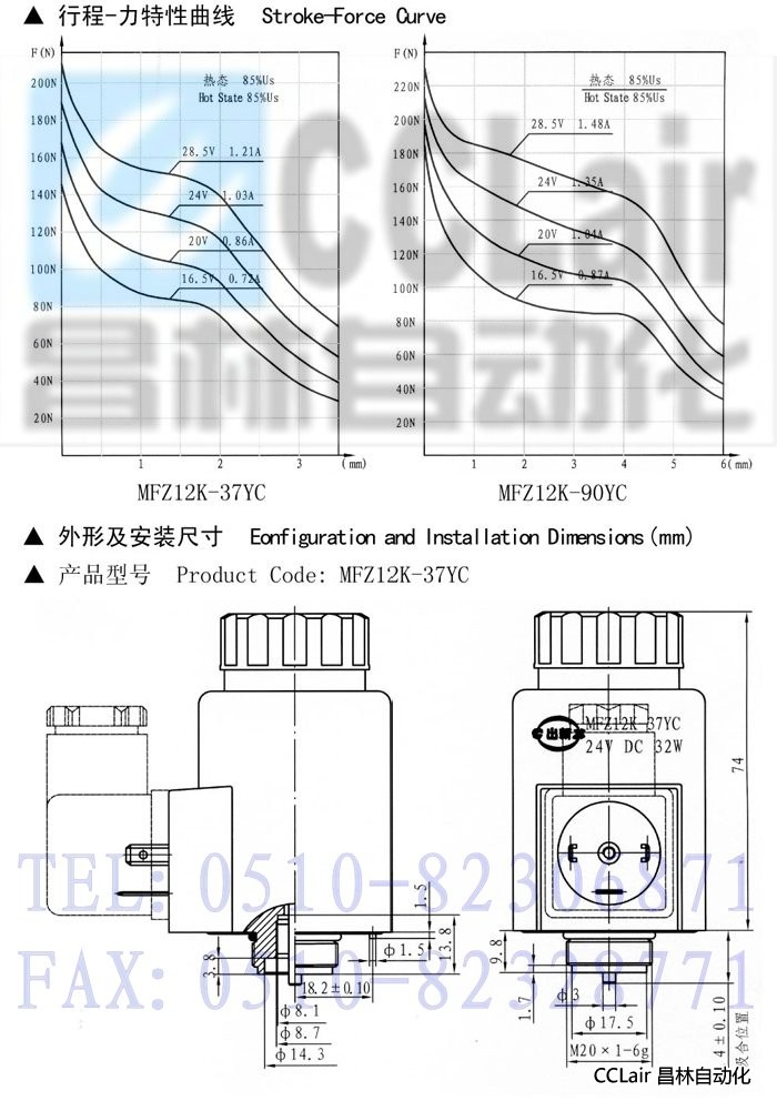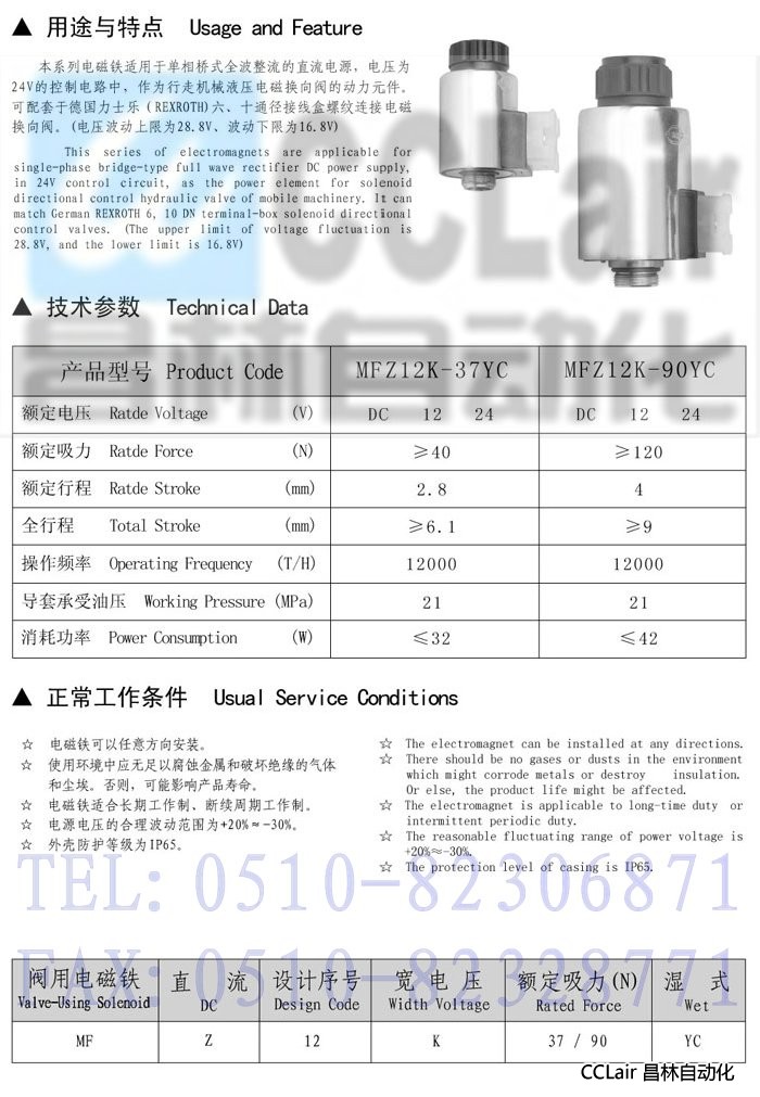 MFZ12K-37YC,MFZ12K-90YC,寬電壓直流濕式閥用電磁鐵