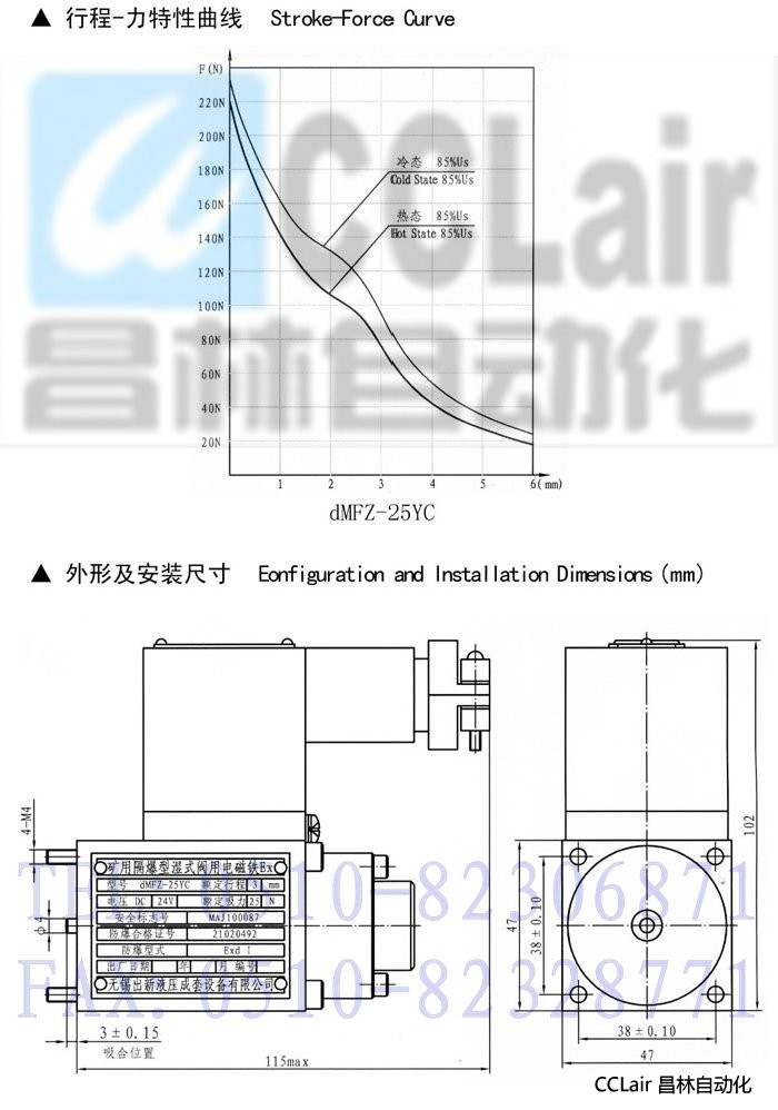 » dMFZ-25YC,隔爆型直流濕式閥用電磁鐵