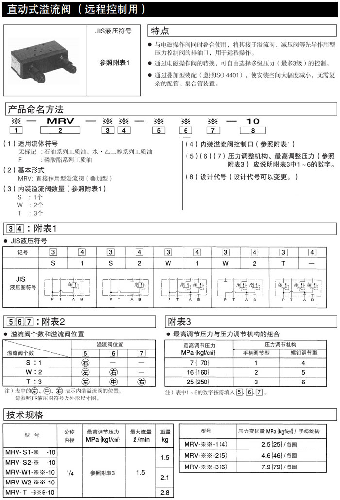 MRV-S1,MRV-S2,MRV-W1,MRV-W2,MRV-T,DAIKIN直動(dòng)式溢流閥