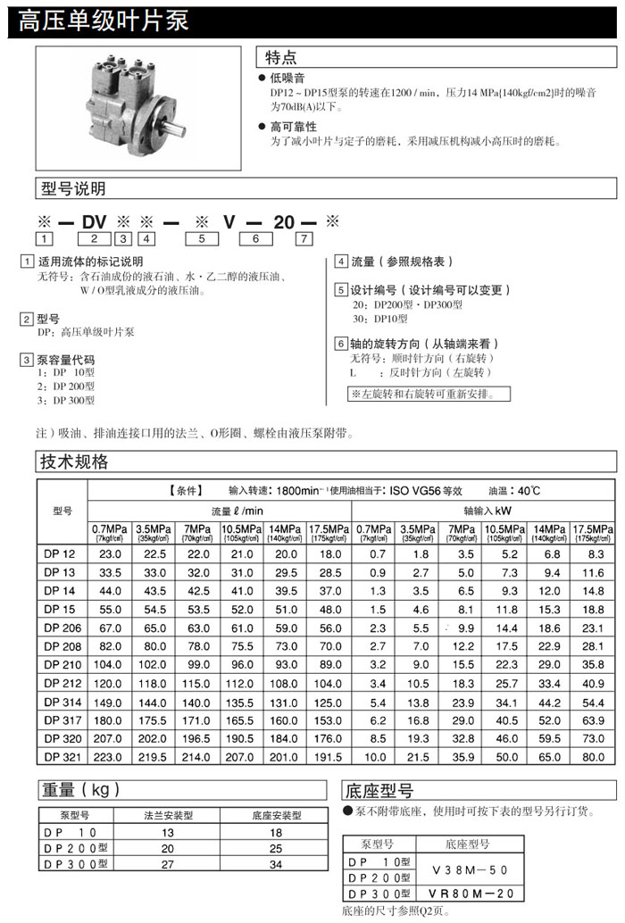 DP12,DP12,DP14,DP15,DP206,DP208,DP210,DP212,DP314,DP317,DP320,DP321,DP12-30V-20,DAIKIN高壓單級(jí)葉片泵
