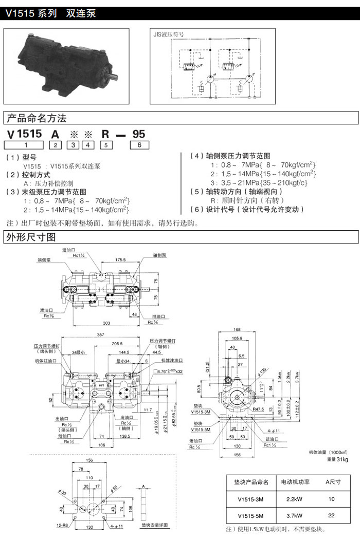 詳細(xì)信息 V1515A11R-95,V1515A12R-95,V1515A13R-95,V1515A21R-95,V1515A22R-95,V1515A23R-95,DAIKIN雙聯(lián)柱塞泵