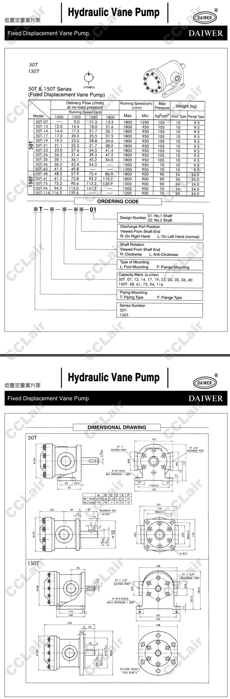 150T-48,150T-61,150T-75,150T-94,150T-116,150T-48-F-LR-01,150T-75-F-RL-01,DAIWER低壓定量葉片泵