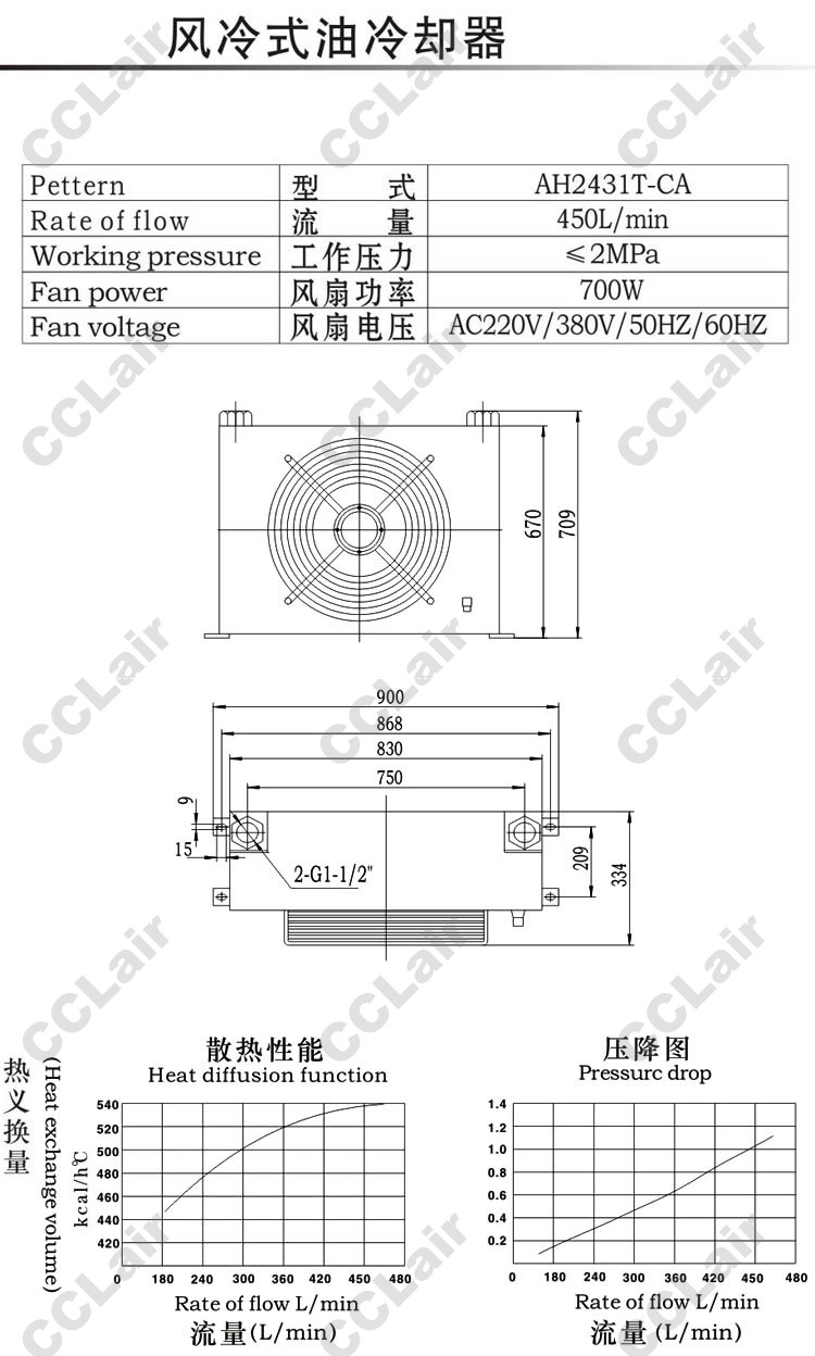 型號: AH2431T-CA,風(fēng)冷式油冷卻器