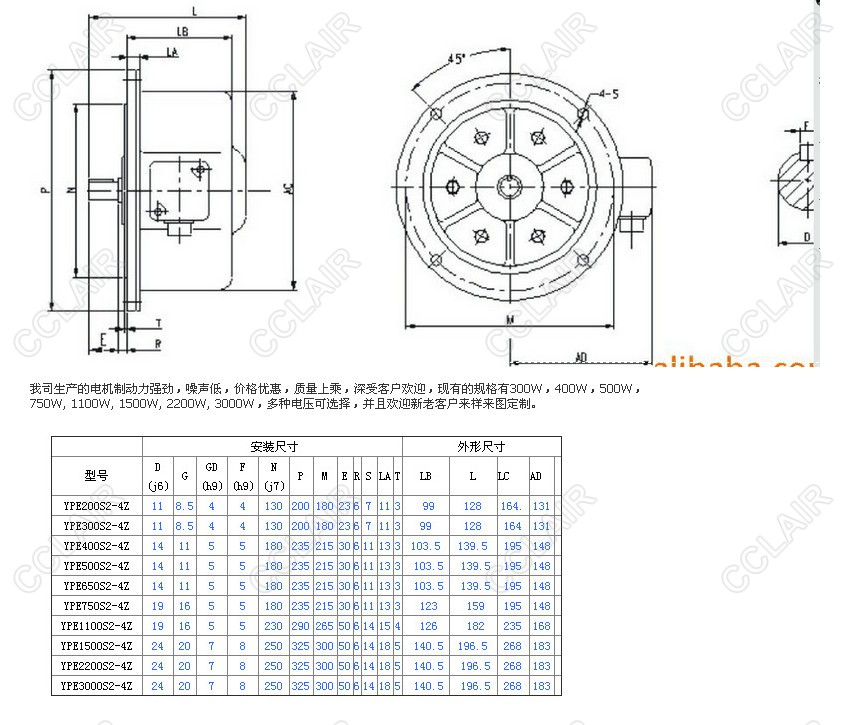 詳細(xì)信息 YPE200S2-4Z,YPE300S2-4Z,YPE400S2-4Z,YPE500S2-4Z,YPE3000S2-4Z,盤式制動(dòng)電機(jī)