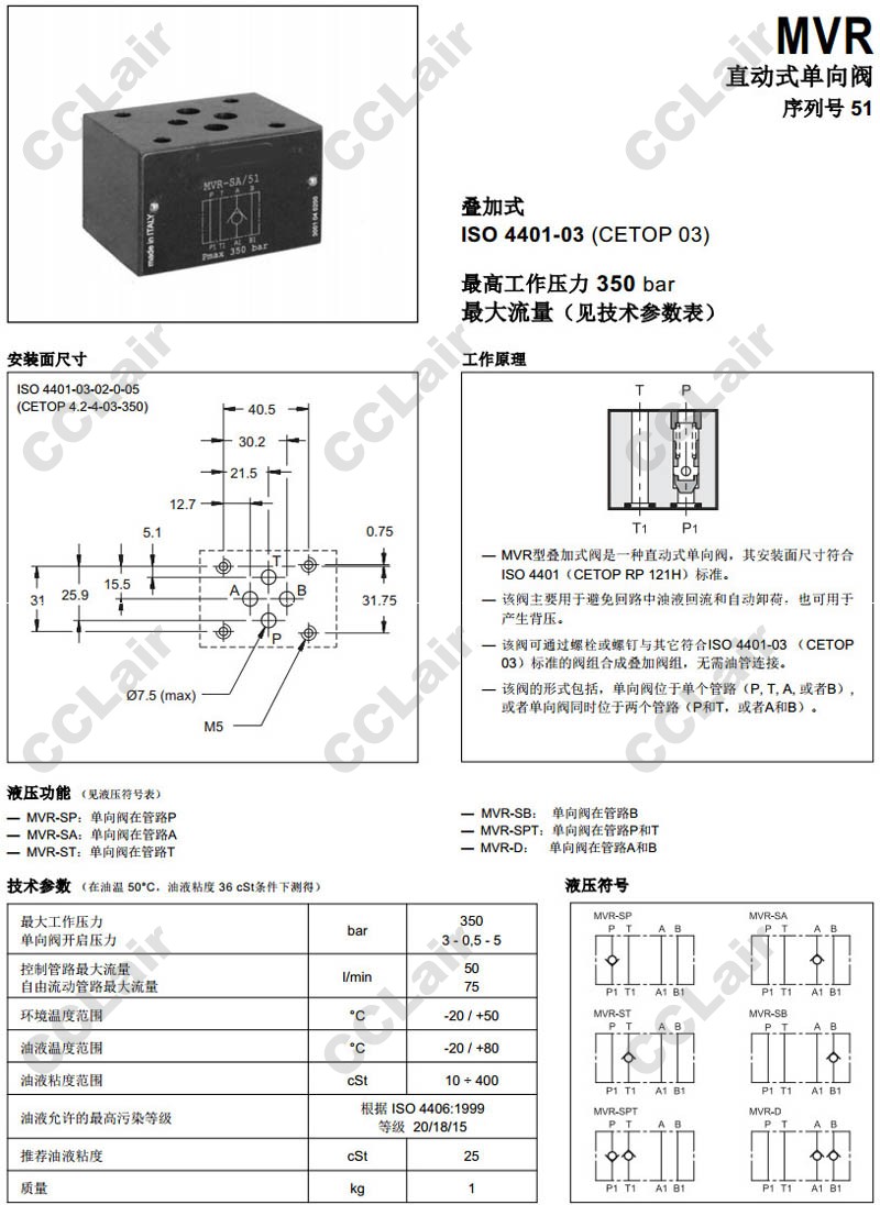 MVR1-SP/51,MVR1-SA/51,MVR3-SB/51,MVR3-ST/51,MVR3-SP/51/V,MVR3-SPT/51/V,MVR1-SA/51/V,MVR3-SB/51/V,單向閥