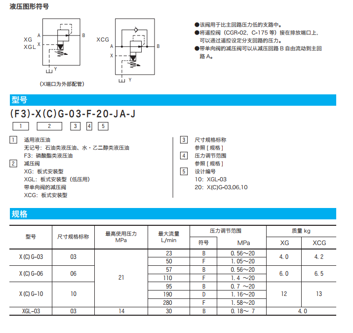XG-03-B-20-JA-J,XG-03-F-20-JA-J,XG-06-B-20-JA-J,XG-06-F-20-JA-J,X(C)G/XGL減壓閥(帶單向閥)